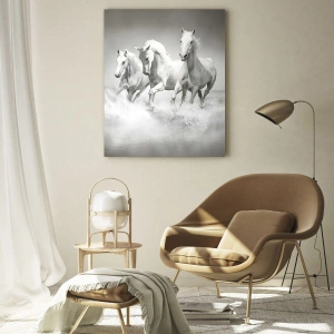 Ved at vælge "Tre hvide heste galoperer på vandet" vælger du en dekoration, der kombinerer kunst, dynamik og tidløs elegance. Maleriet 70x50 cm vil blive et fokuspunkt i ethvert rum og bringe harmoni og inspiration.