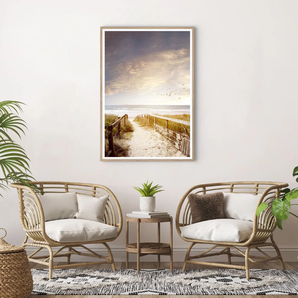Plakat i ramme af lyst egetræ - Et rum af ro og fred - 70x100 cm