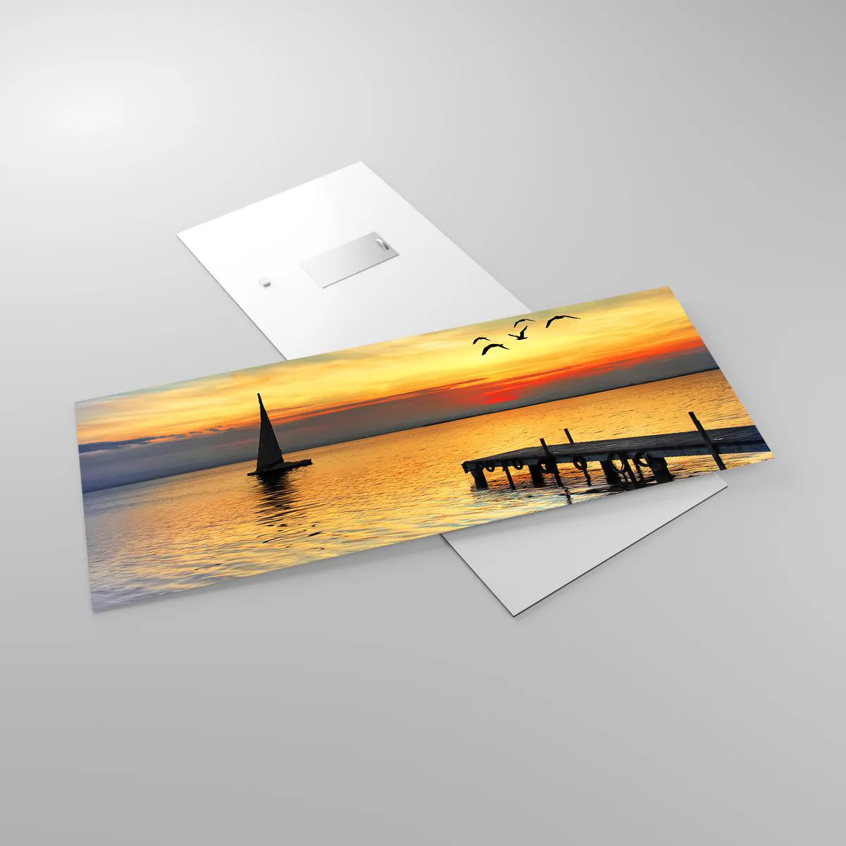 Billedet på glas er lavet af 4 mm tykt glas. Glassets kanter har et mat trapezformet snit. Billedet er sikkert at bruge og klar til at hænge op - der er metalophæng fastgjort på bagsiden af billedet og skumafstandsstykker til at regulere billedets jævne afstand fra væggen.