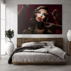 - Maleriet forestiller en kvinde, der får en professionel makeup, og understreger elegance og udtryksfuldhed. Det er et perfekt valg til glamourøse interiører, såsom skønhedssaloner eller moderne soveværelser.