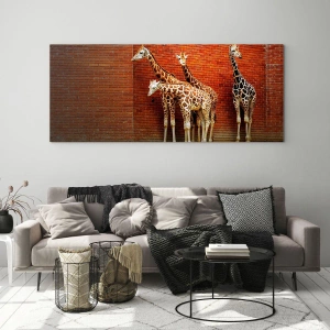 Denne dekoration kan også være en god gaveidé til dyre- og safari-elskere. Maleriet "Giraffer mod en murstensvæg" bringer en unik atmosfære til dit interiør og understreger rummets stil og karakter.