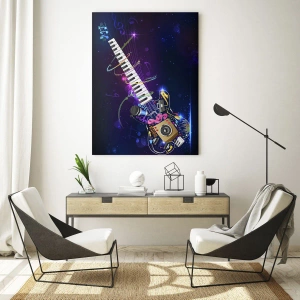 Dette glasbillede på 70x50 cm er et fremragende valg for folk, der elsker musik og kunst. Tryk på glas sikrer enestående kvalitet og klarhed i detaljer, der tiltrækker øjet og giver interiører en unik karakter. Takket være sin slidstærke overflade er maleriet let at vedligeholde og modstandsdygtigt over for elementerne.