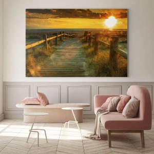 Billedet på glas er lavet af 4 mm tykt glas. Glassets kanter har et mat trapezformet snit. Billedet er sikkert at bruge og klar til at hænge op - der er metalophæng fastgjort på bagsiden af billedet og skumafstandsstykker til at regulere billedets jævne afstand fra væggen.