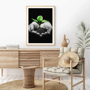Plakat i ramme af lyst egetræ - Jeg elsker naturen, jeg beskytter den - 40x30 cm