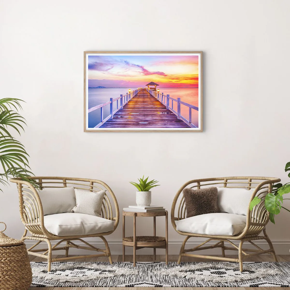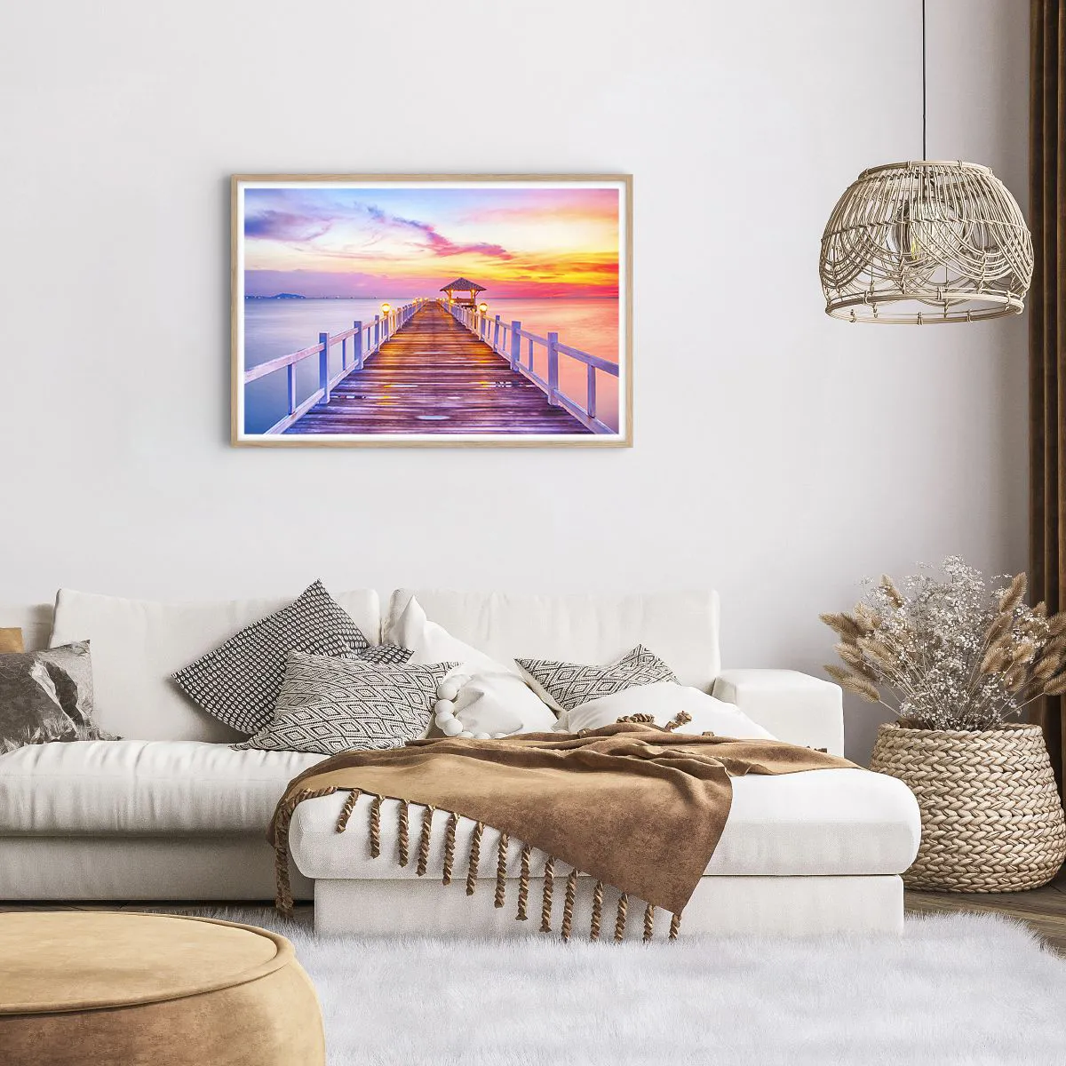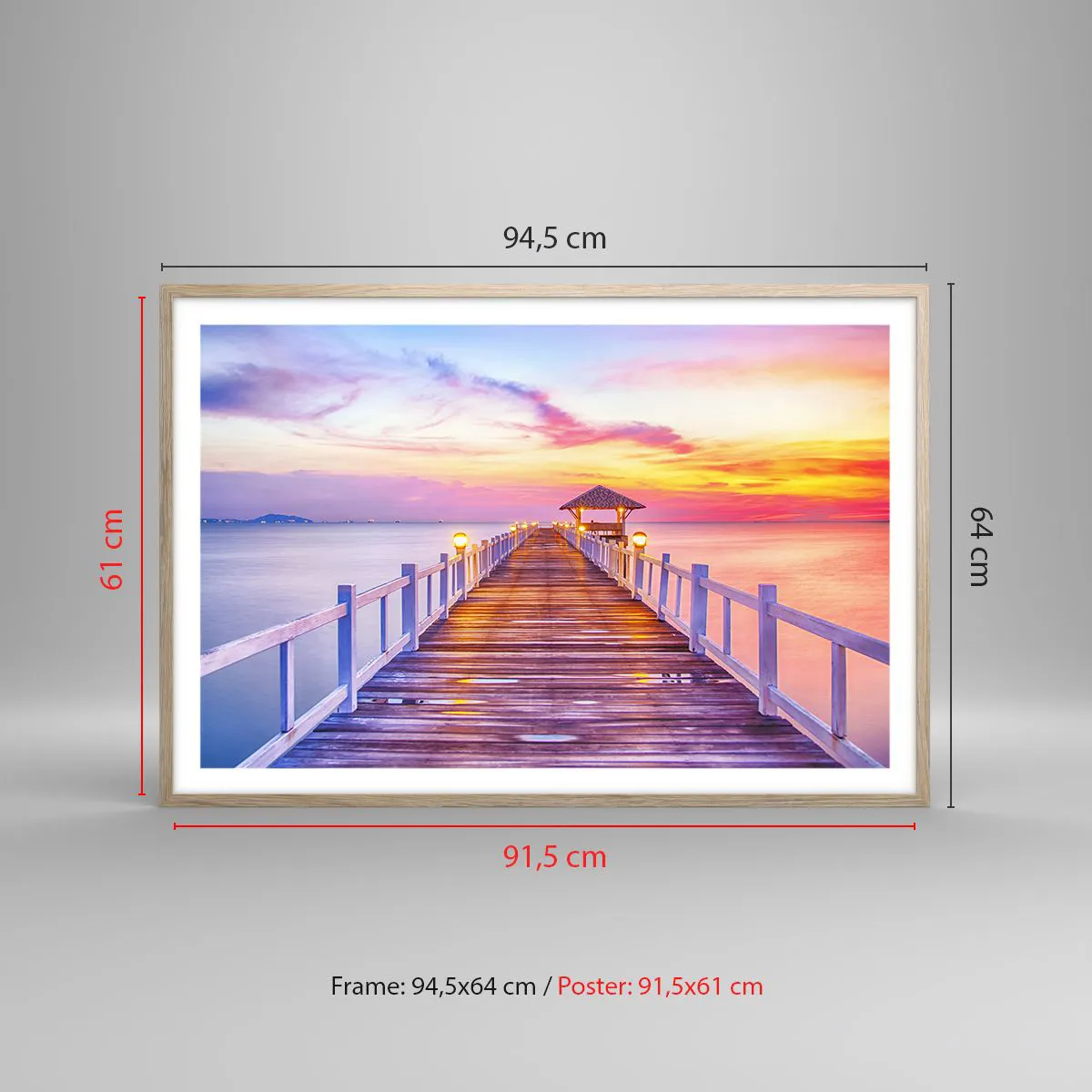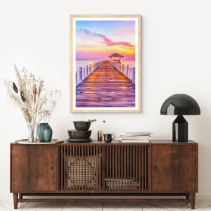 Plakat i ramme af lyst egetræ - Lilagylden stilhed om aftenen - 91x61 cm