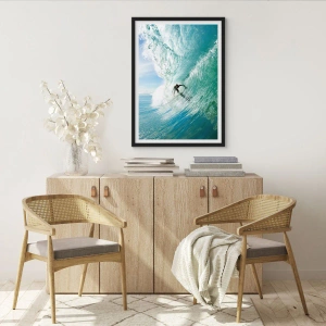 Plakat i sort ramme - Surfer på en bølge i sollyset - 50x70cm - Altid på bølgen - Moderne vægdekoration til stue og soveværelse ARTTOR