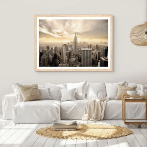 Plakat i ramme af lyst egetræ - New York vævet af grå - 40x30 cm