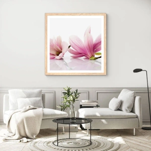 Plakat i ramme af lyst egetræ - Blød som et åndedrag af forår - 50x50 cm