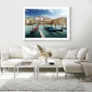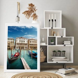 Plakat i hvid ramme - Paladser i blåt - 100x70 cm
