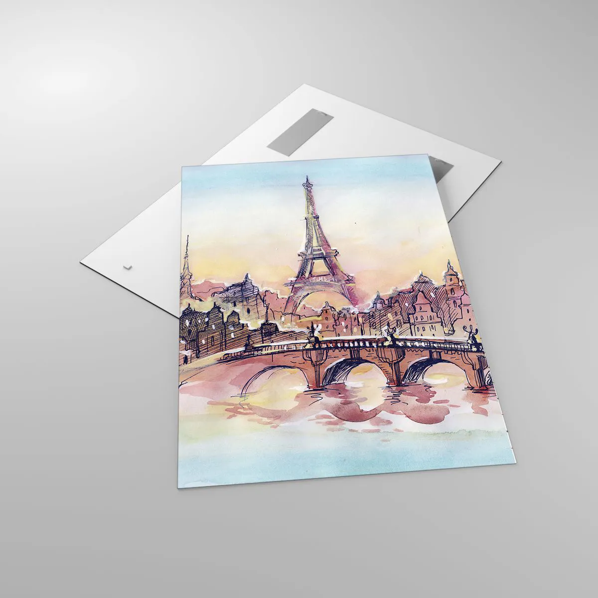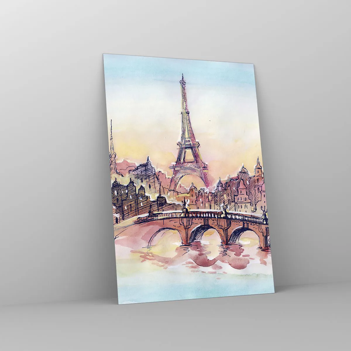 Billedet på glas er lavet af 4 mm tykt glas. Glassets kanter har et mat trapezformet snit. Billedet er sikkert at bruge og klar til at hænge op - der er metalophæng fastgjort på bagsiden af billedet og skumafstandsstykker til at regulere billedets jævne afstand fra væggen.