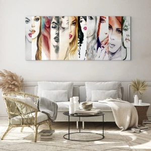 Billede på glas - En collage af portrætter af kvinder i forskellige kunstneriske stilarter. - 70x50cm - Og det er altid DIG - Moderne vægdekoration til stue og soveværelse ARTTOR