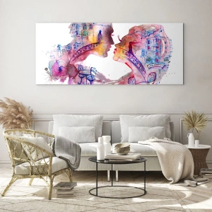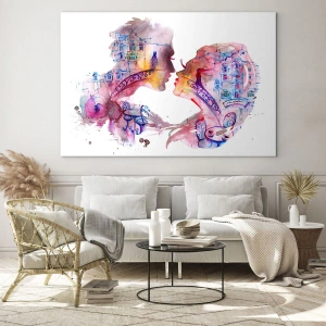 Billede på glas - Illustration af et abstrakt portræt af to personer formet som et hjerte - 70x50cm - Sukkenes hemmelige bro - Moderne vægdekoration til stue og soveværelse ARTTOR