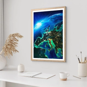 Plakat i ramme af lyst egetræ - Et funklende Europa - 30x30 cm