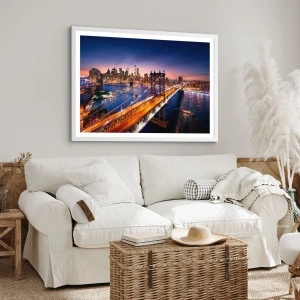 Plakat i hvid ramme - En lysende bro til hjertet af byen - 50x70 cm