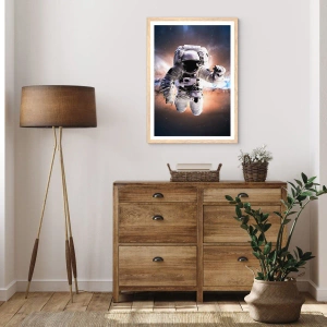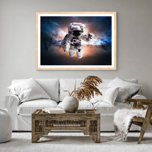 Plakat i ramme af lyst egetræ - Hilsner fra det ydre rum - 61x91 cm