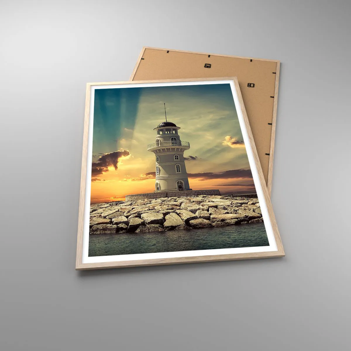Plakat i ramme af lyst egetræ - Lys - Godhed - Skønhed - 70x100 cm