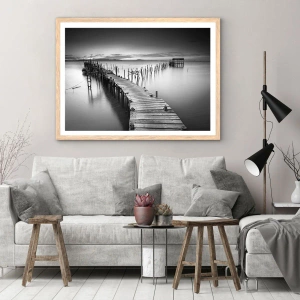 Plakat i ramme af lyst egetræ - Stilheden fra en glemt kyst - 40x50 cm