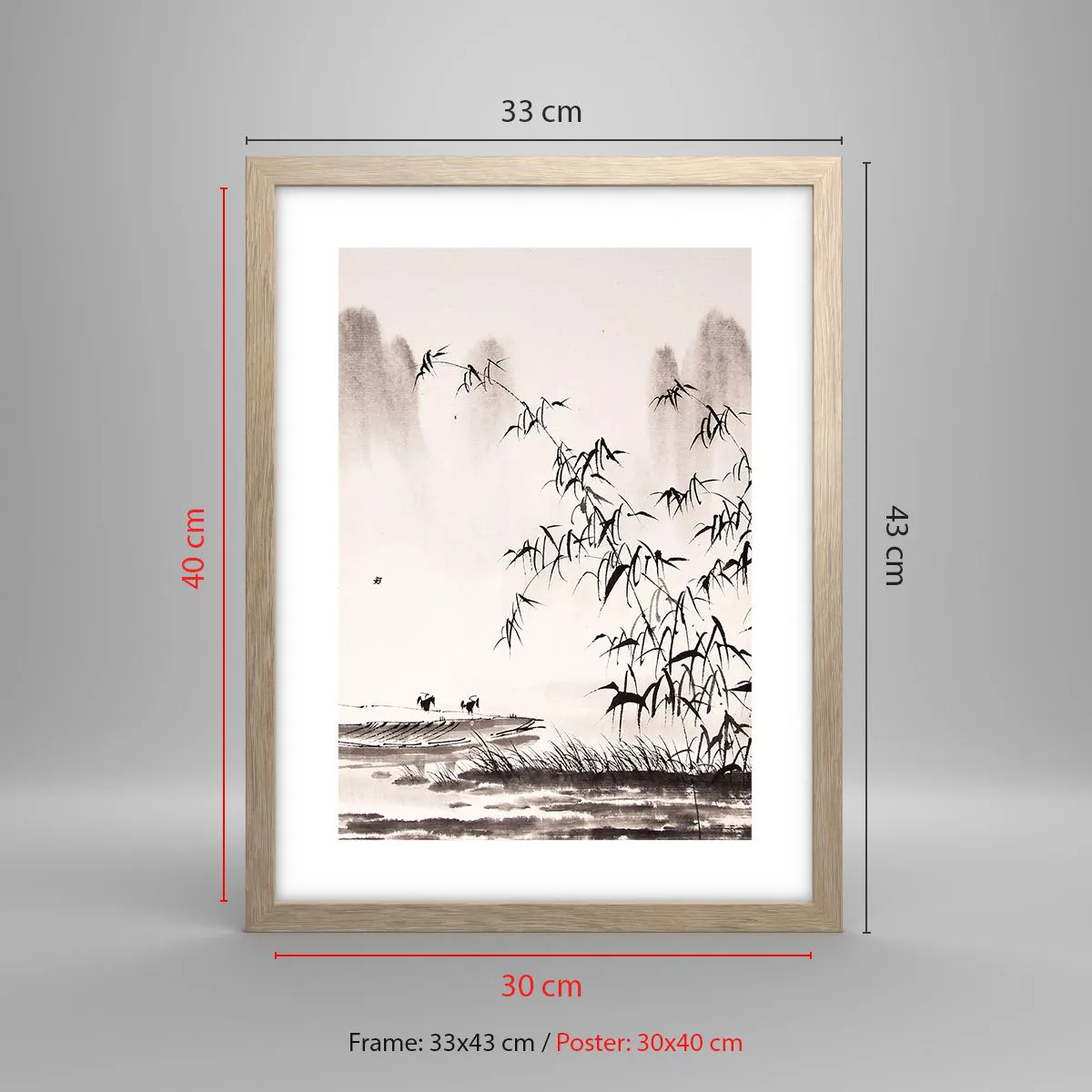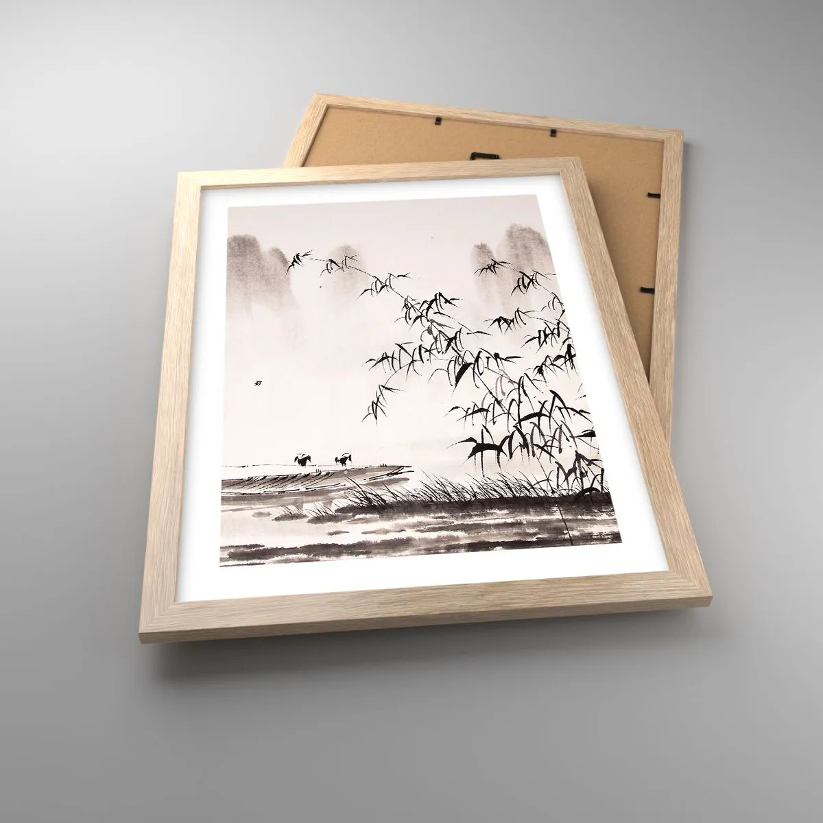 Plakat i ramme af lyst egetræ - Stilhed i rismarkerne - 30x40 cm