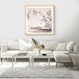 Plakat i ramme af lyst egetræ - Stilhed i rismarkerne - 50x70 cm