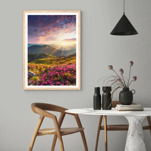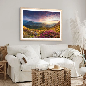Plakat i ramme af lyst egetræ - Friskheden af en morgen i bjergene - 50x70 cm