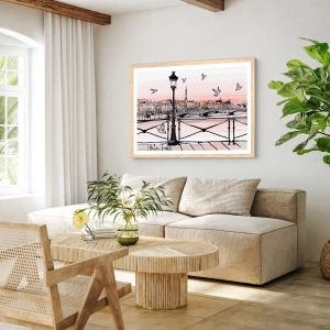 Plakat i ramme af lyst egetræ - Over Paris' hustage - 30x40 cm