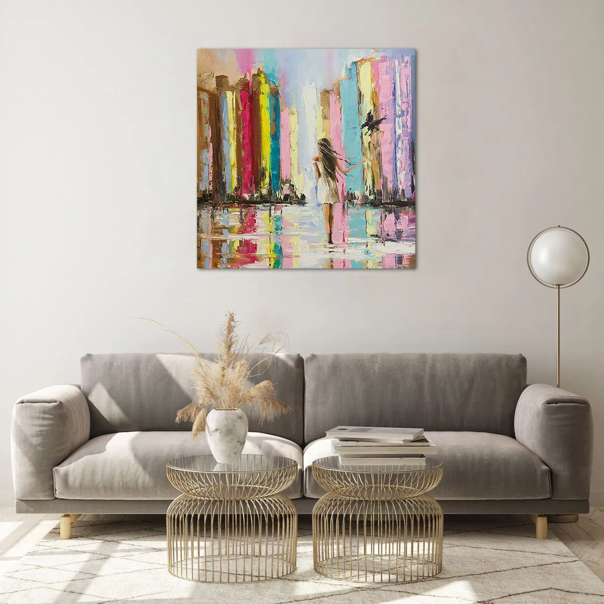 Glasmaleriet er fremstillet med den største opmærksomhed på detaljerne ved hjælp af moderne trykteknologi - dette garanterer bevarelse af de naturlige farver og høj farvemætning. Maleriets overflade er UV-bestandig.Fremstillingen af malerier på glas foregår i flere faser. Trykket af høj kvalitet og de to sikkerhedslag er termisk bundet til glasset. Vi bruger innovativ ovnteknologi til at laminere glas i et vakuummiljø.