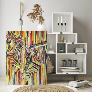 Billede på glas - Farverige zebraer i kunstnerisk akvarelstil - 70x50cm - Så du også... - Moderne vægdekoration til stue og soveværelse ARTTOR