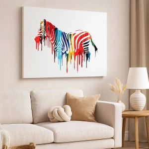 Lærredstryk - Billede på lærred - Abstrakt zebra i farverige farver med en malingseffekt - 70x50cm - Ikke kun sort og hvidt - Moderne vægdekoration til stue og soveværelse ARTTOR