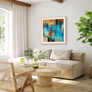 Plakat i ramme af lyst egetræ - Gennem det blå slør - 70x100 cm