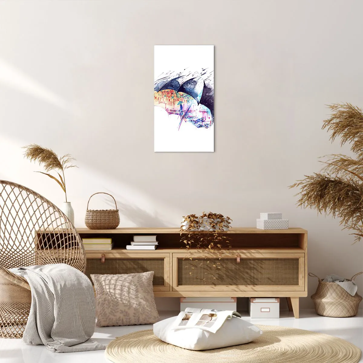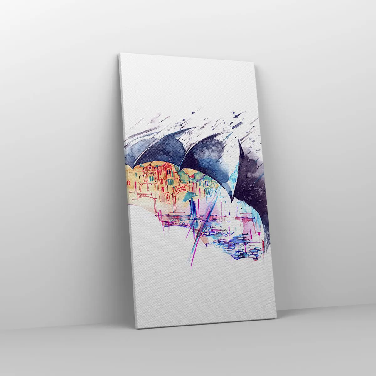 Lærredstryk - Billede på lærred - Gåtur i regnvejr - 45x80 cm
