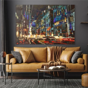Billede på glas - Aftenens travlhed på gaden - 120x80 cm