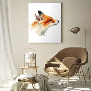 Billede på glas - Akvarel illustration af en ræv, der kigger ud i det fjerne - 70x50cm - Man kan aldrig være for forsigtig - Moderne vægdekoration til stue og soveværelse ARTTOR