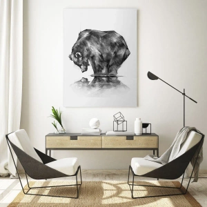 - En kunstnerisk grafik af en bjørn, der læner sig ud over vandoverfladen. Et minimalistisk, monokromatisk design, der er perfekt til elegante interiører.
