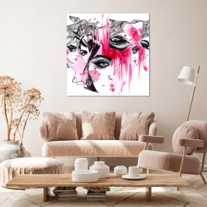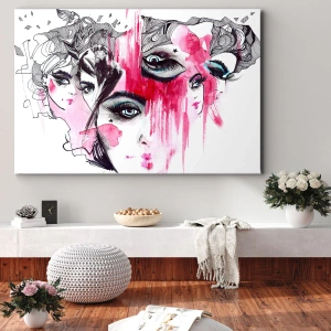 Vægkunst - Abstrakte øjne - Abstrakt ansigt i nuancer af lyserød og sort