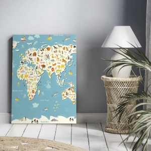 Lærredsbilledet "Farverigt verdenskort med dyreillustrationer" er en unik dekoration, der begejstrer med både sin æstetik og pædagogiske karakter. Det forestiller et verdenskort fyldt med farverige illustrationer af dyr, der er karakteristiske for individuelle kontinenter og oceaner. Dette motiv inspirerer ikke kun til læring af geografi og natur, men introducerer også en atmosfære af glæde og kreativitet i interiøret.