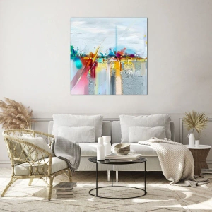 Billedet på glas er lavet af 4 mm tykt glas. Glassets kanter har et mat trapezformet snit. Billedet er sikkert at bruge og klar til at hænge op - der er metalophæng fastgjort på bagsiden af billedet og skumafstandsstykker til at regulere billedets jævne afstand fra væggen.