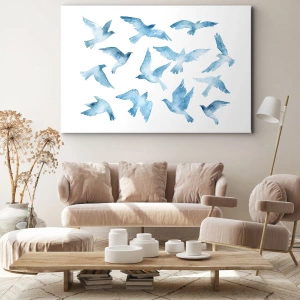 Lærredstryk - Billede på lærred - Blåfugle - 65x120 cm