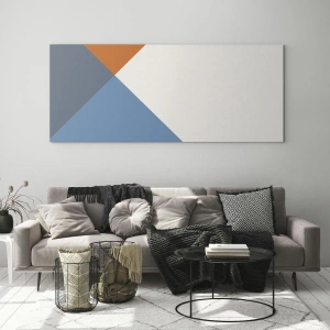 Billedets centrale element er trekanter i forskellige pastelfarver, som skaber en dynamisk og afbalanceret komposition. Den enkle form og de subtile farver giver hele værket elegance og en universel karakter, hvilket gør billedet velegnet til en række forskellige interiørdesigns.