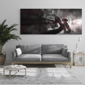 "I jazzens tåger" er et maleri på glas, der på unik vis indfanger atmosfæren af jazz og musikalsk passion. Det skildrer en saxofonist fordybet i atmosfærisk røg, fanget i monokromatiske farver. Denne kunstneriske komposition tiltrækker øjet med sin elegance og subtile skønhed og introducerer en unik atmosfære i interiøret.