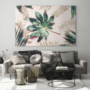 Billede på glas - En undersøgelse af grønt på en lyserød baggrund - 80x120 cm