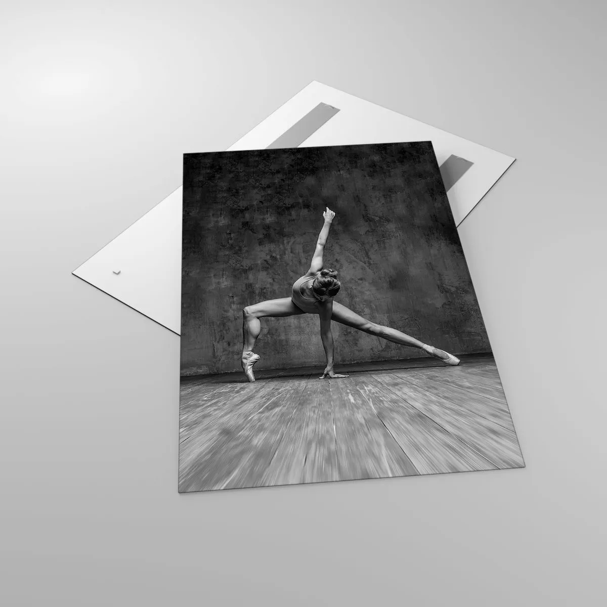 Billedet på glas er lavet af 4 mm tykt glas. Glassets kanter har et mat trapezformet snit. Billedet er sikkert at bruge og klar til at hænge op - der er metalophæng fastgjort på bagsiden af billedet og skumafstandsstykker til at regulere billedets jævne afstand fra væggen.