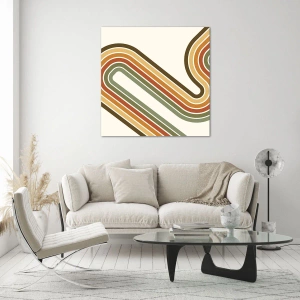 - Et stilfuldt maleri i retrostil med en geometrisk komposition af bølgede linjer i varme nuancer af brun, orange og grøn. Dets minimalistiske form og nostalgiske farveskema tilføjer karakter til ethvert interiør. Et ideelt valg til moderne interiører.
