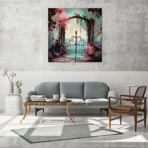 Billedet på glas er lavet af 4 mm tykt glas. Glassets kanter har et mat trapezformet snit. Billedet er sikkert at bruge og klar til at hænge op - der er metalophæng fastgjort på bagsiden af billedet og skumafstandsstykker til at regulere billedets jævne afstand fra væggen.