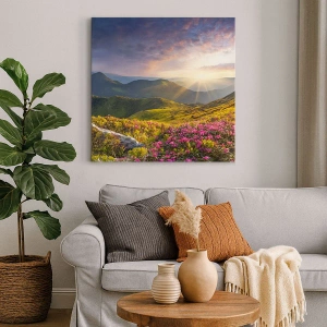Lærredstryk - Billede på lærred - Friskheden af en morgen i bjergene - 160x50 cm