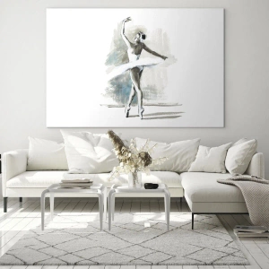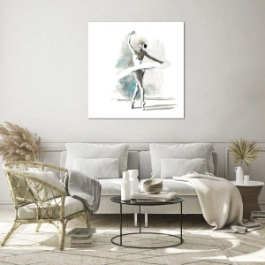 Billede på glas - En ballerina i en klassisk dansestilling - 70x50cm - Fortryllet til en svane - Moderne vægdekoration til stue og soveværelse ARTTOR