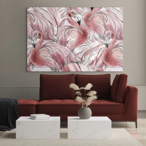 - En dekorativ komposition med lyserøde flamingoer i en kunstnerisk tilgang. Eksotisk lethed og elegance, perfekt til glamourøse eller tropiske interiører.
