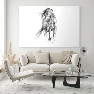 Billede på glas - En skitse af en galoperende hest i minimalistisk stil - 70x50cm - I en yndefuld trav - Moderne vægdekoration til stue og soveværelse ARTTOR