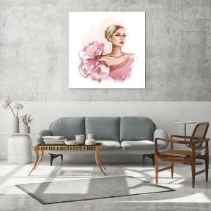 Billede på glas - Stiliseret portræt af en kvinde i en lyserød kjole - 70x50cm - Som malet... - Moderne vægdekoration til stue og soveværelse ARTTOR