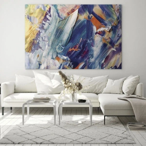 "En uro i farver" er en komposition, der udstråler energi og bevægelse. Sammenstillingen af intense farver – fra kølige blå til varme nuancer af gul og orange – skaber en dynamisk helhed, der minder om udtryksfuldt impasto-maleri. Dette er et værk, der påvirker følelser og stimulerer fantasien.