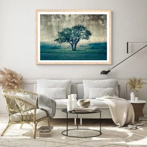 Plakat i ramme af lyst egetræ - Et æbletræ på en blå membran? - 60x60 cm